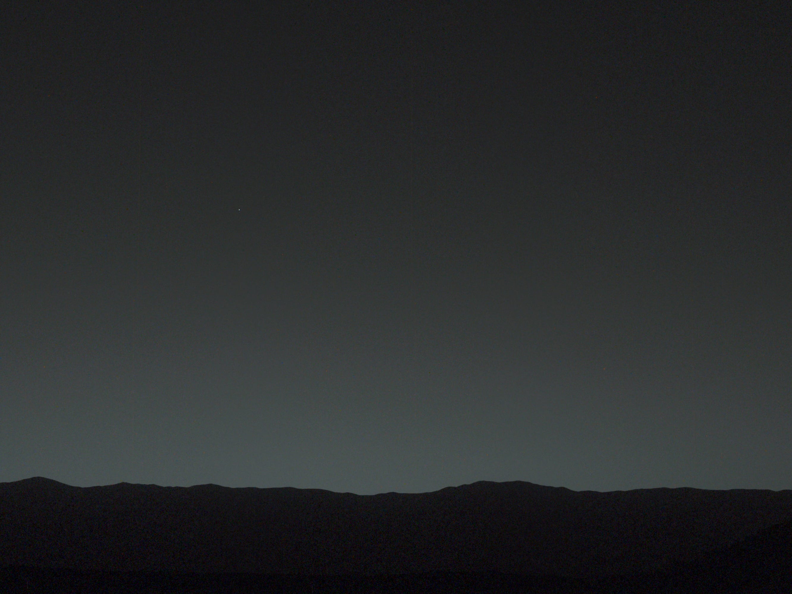 This view of the twilight sky and Martian horizon taken by NASA's Curiosity Mars rover in 2014 includes Earth as the brightest point of light in the night sky. Earth is a little left of center in the image, and our moon is just below Earth. A human observer with normal vision, if standing on Mars, could easily see Earth and the moon as two distinct, bright evening stars.