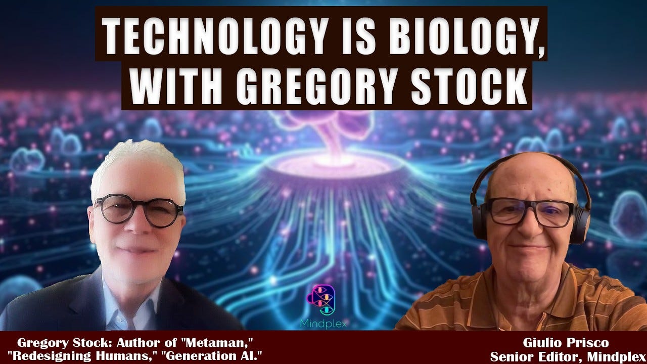 YouTube: Gregory Stock (author of Generation AI) and Giulio Prisco (author of Futurist Spaceflight Meditations) move beyond the typical fears of AI replacing humans. Instead, they explore the deep cosmic and spiritual meaning of technology. Is Technology Biology? If we are part of nature, and we create technology, does that make technology a natural, biological process?